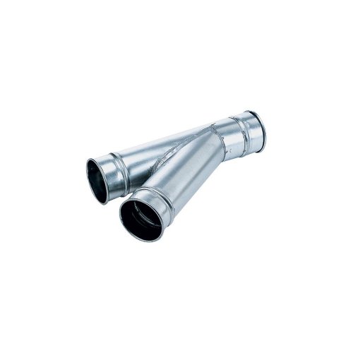 Galvanized branches used for dropping down from above or splitting main line. Long angle reduces suction loss.
